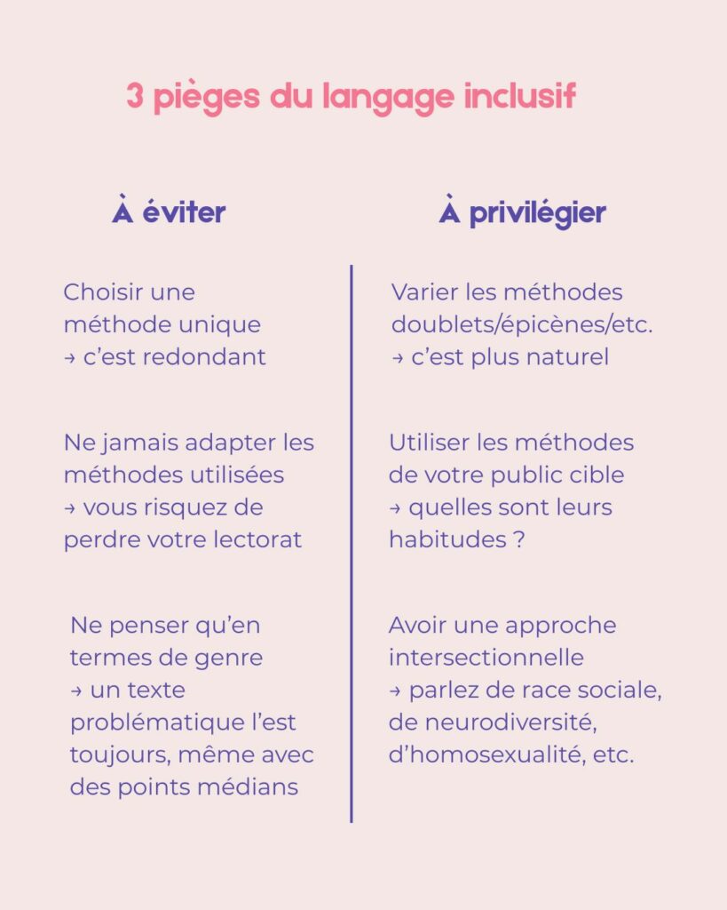 Et vous, quels sont les pièges que vous avez repérés ou rencontrés en écrivant en langage inclusif ?